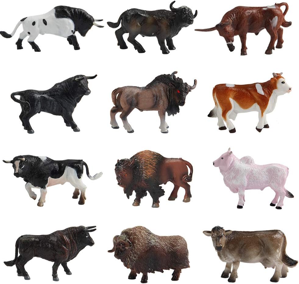 12 Pcs Farm Toy Set,Multicolor Cow Animal Figurines Cool Cake Topper & Exhibits Best Gift for Ages 3 4 5 Boys&Girls